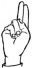 На ћирилици написано ШАЛЕ МИЛОРАДОВИЋ састоји се из 15 слова [?]. Исписано ћириличном једноручном азбуком за глувонеме: